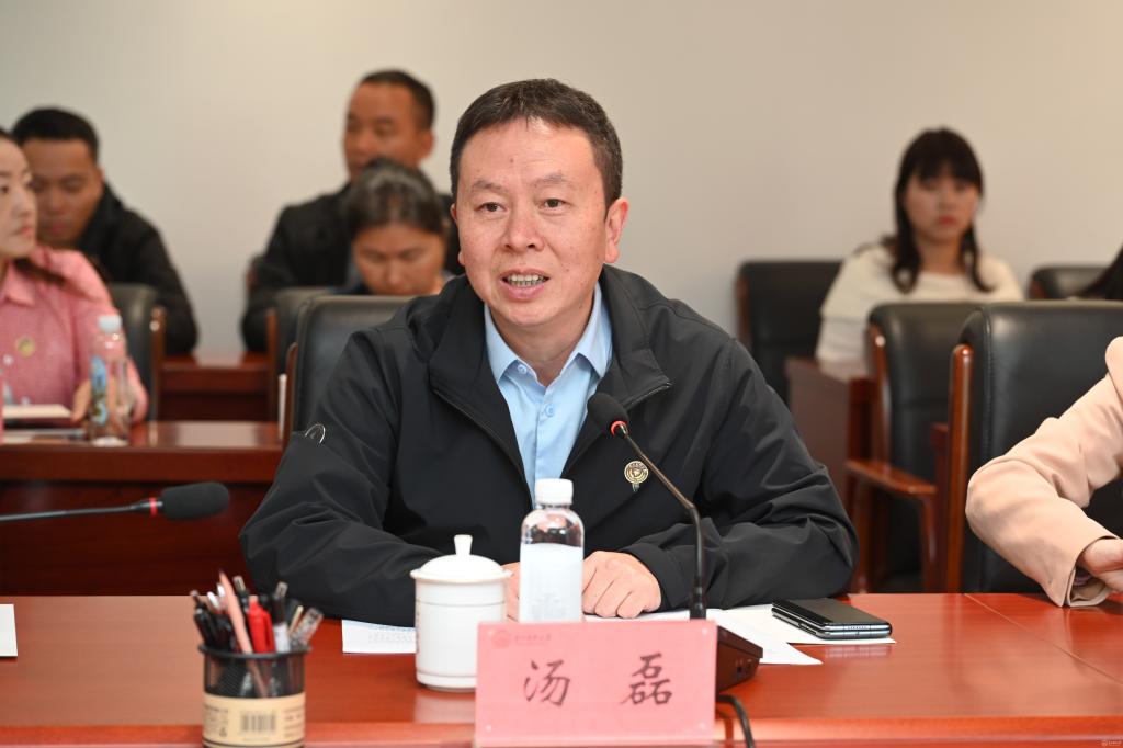 汤磊主持并致欢迎辞,简要介绍学校的基本情况。他表示,希望双方增进合作友谊、深化合作互信,建立健全合作交流和定期会商机制,创新人才培养方案,推动教育教学改革,加强科研深度合作,在共建大平台、共担大项目、畅通成果转化渠道等方面持续发力,打造更多有影响力的标志性成果,共同推动医学教育和卫生健康事业高质量发展更上新台阶。